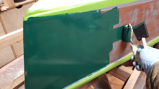This process is repeated for the sides. Since this boat is destined to be green, a gray primer is used.